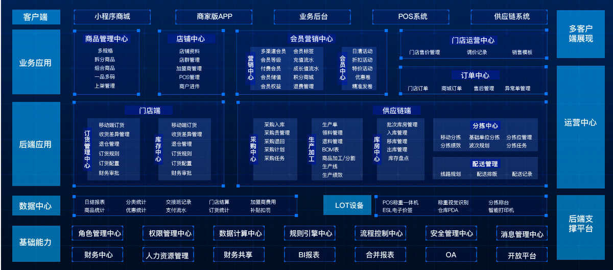 帮助行业客户解决生鲜采购、收货、存储、加工、生产、分拣、 配送等供应链标准化数字解决方案;标准的批次管理,通用的 三方接入API方案,实现精准库存管理、商品管理、高效、多 维度的分拣加工、生产,精准的损耗成本计算,人工成本计算 及财务一体化报表,实现客户高效运作。